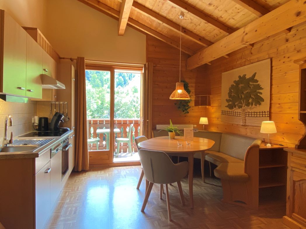 A cozy 45m2 apartment which can accommodate 4 to 5 guests, with beautiful wood finishing. Located on the first floor with a south-facing balcony and a great view of the mountains and ski slopes. Includes a spacious living room with cozy sitting/dining corner and a fully equipped kitchen.