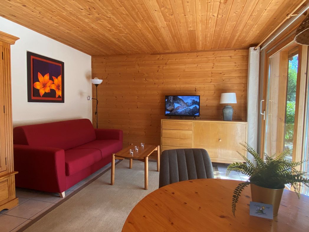 Un appartement confortable de 32m2 pouvant accueillir 2 à 4 personnes, avec de belles finitions en bois. Celui-ci est situé au rez-de-chaussée avec un jardin orienté sud avec une excellente vue sur les montagnes et les pistes de ski, comprenant un salon spacieux avec un canapé-lit confortable, un coin repas et une cuisine entièrement équipée. Comprenant un salon spacieux avec un canapé-lit confortable, un coin repas et une cuisine entièrement équipée.